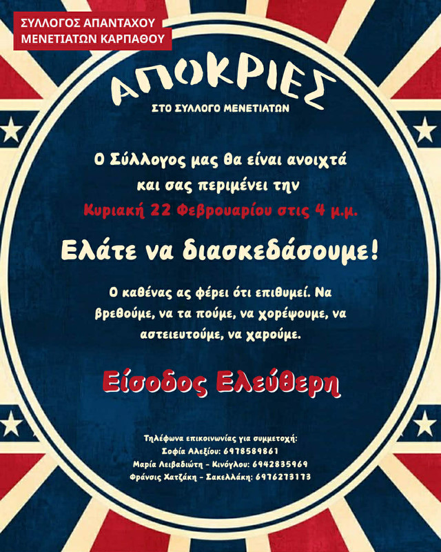 Αποκριές στον Σύλλογο Απανταχού Μενετιατών Καρπάθου!
